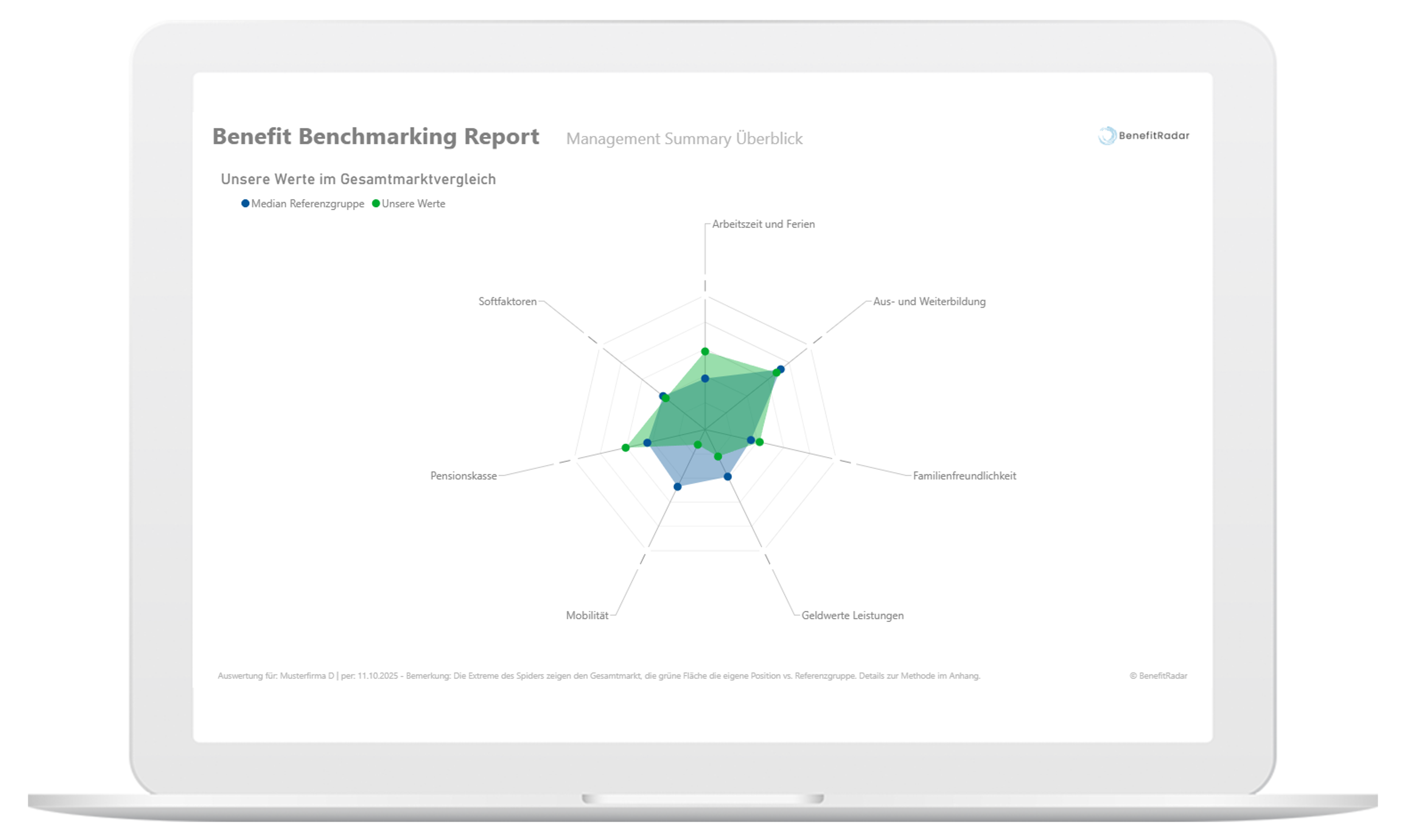 "BenefitRadar hilft uns, unsere Anstellungsbedingungen im Vergleich zu anderen Unternehmen besser einzuordnen. Die Ergebnisse sind klar dargestellt und anschaulich visualisiert, sodass man sich schnell einen guten Überblick verschaffen kann."